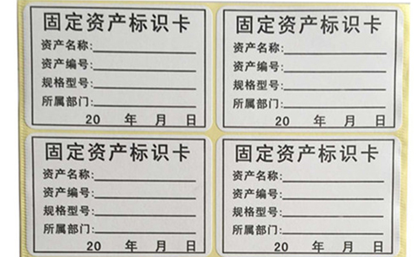 固定資產標簽是用于區(qū)別固定資產的一種特定標識;資產標簽上一般有資產名稱、資產編號、規(guī)格型號、所屬部分、相關日期等信息。固定資產標簽又稱固定資產標簽紙,固定資產管理標簽,固定資產標簽貼等。